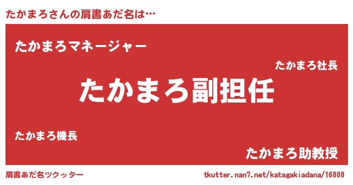 | 男性向けラノベタイトル風あだ名 | 『たかまろという概念が存在しない退屈な世界 』 |