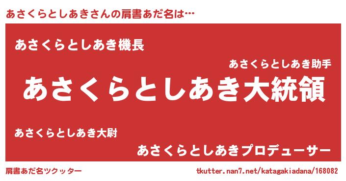 | 意味不明あだ名 | 『あさくらとしあきフォーエバー』 |