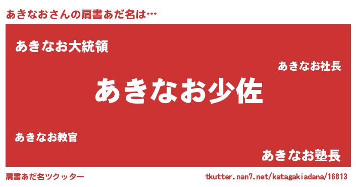 | 男性向けラノベタイトル風あだ名 | 『転生したらあきなおだった件』 |