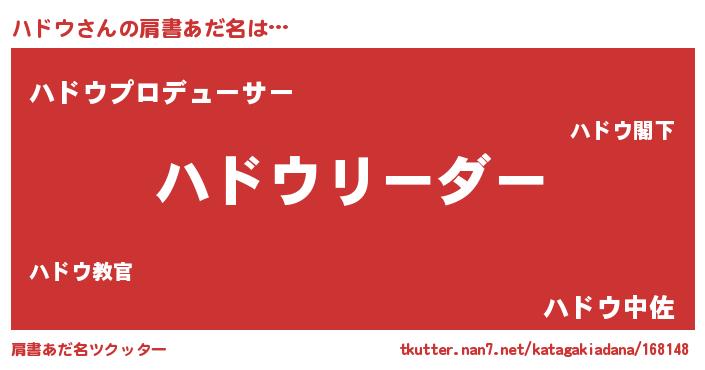 | 意味不明あだ名 | 『とにかく怪しいハドウ』『自称ハドウ』 |