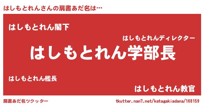 | 男性向けラノベタイトル風あだ名 | 『ノーゲーム・ノーハシモトレン』 |