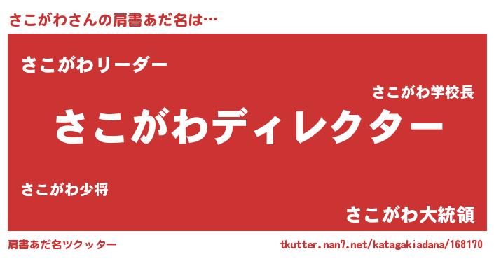 | 意味不明あだ名 | 『とにかく怪しいさこがわ』 |