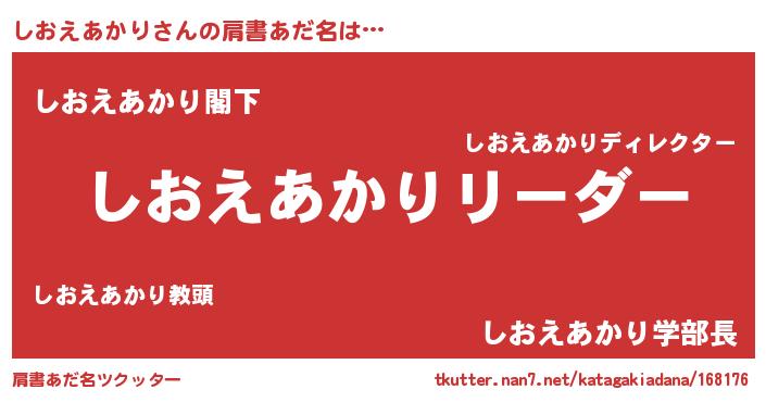 | 女子向けラノベタイトル風あだ名 | 『しおえあかり様がみてる』 |