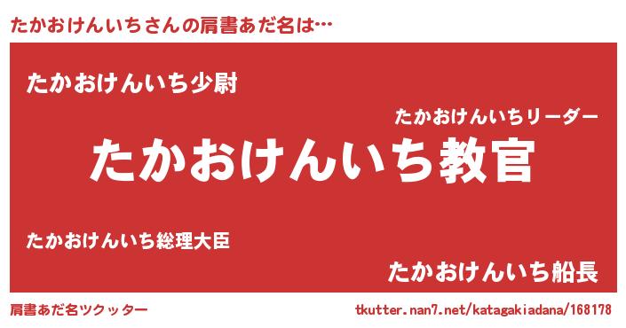 | 意味不明あだ名 | 『住所不定無職たかおけんいち(9歳)』 |