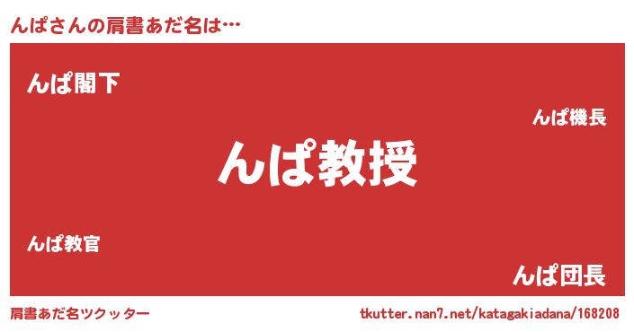 | ヘコむあだ名 | 『んぱお』『んぱ(小並感)』 |