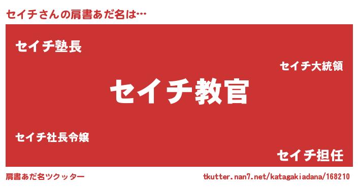 | 男性向けラノベタイトル風あだ名 | 『魔弾の王とセイチ』『セイチの憂鬱』 |