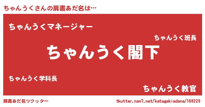 | 意味不明あだ名 | 『自称ちゃんうく』 |