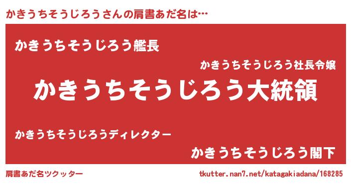 | 男性向けラノベタイトル風あだ名 | 『やはりかきうちそうじろうの青春ラブコメはまちがっている 』 |