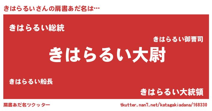 | 欧米人風あだ名 | 『トリンドルきはらるい』 |