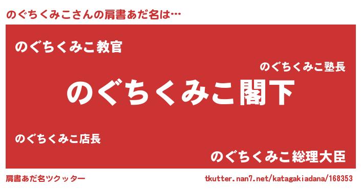 | 女子向けラノベタイトル風あだ名 | 『のぐちくみこストレイドッグス』 |