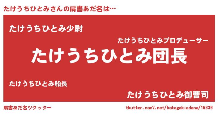 | ポケモン風あだ名 | 『ヒタケウチヒトミ』『タケキング』 |