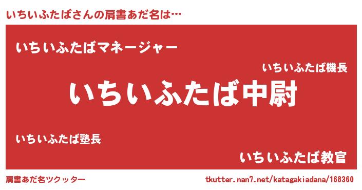 | ヘコむあだ名 | 『いち太郎』『いちいふたば(笑)』 |