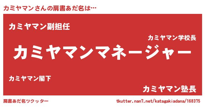 | 意味不明あだ名 | 『永久保存カミヤマン』『自称カミヤマン』 |