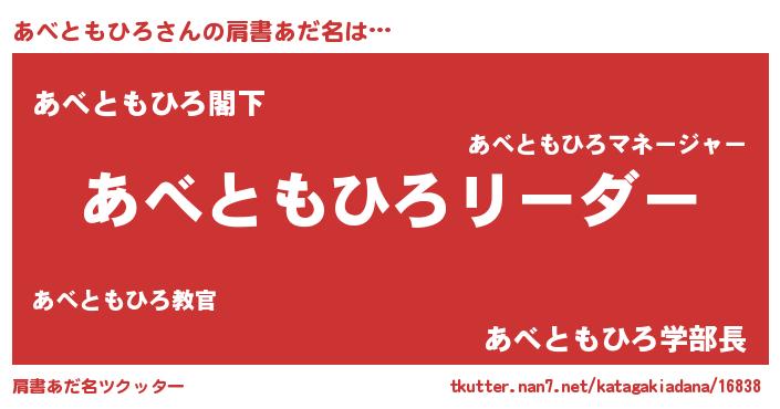 | 男性向けラノベタイトル風あだ名 | 『あべともひろの嫁は女の子じゃないと思った?』 |