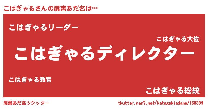 | 男性向けラノベタイトル風あだ名 | 『はたらくこはぎゃるさま!』 |