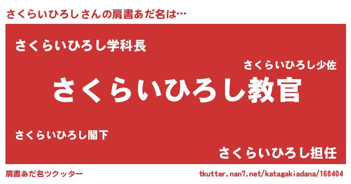 | 男性向けラノベタイトル風あだ名 | 『魔弾の王とさくらいひろし』 |