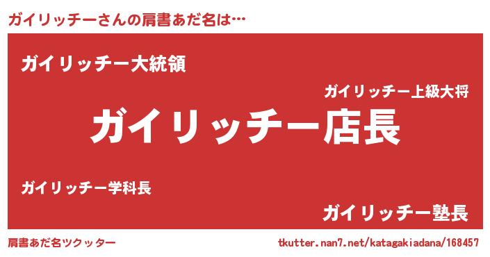 | 胡散臭い通販商品みたいなあだ名 | 『モテモテ間違いなし水晶球…その名も「ガイリッチー」』 |
