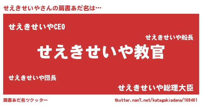 | 意味不明あだ名 | 『住所不定無職せえきせいや(6歳)』 |