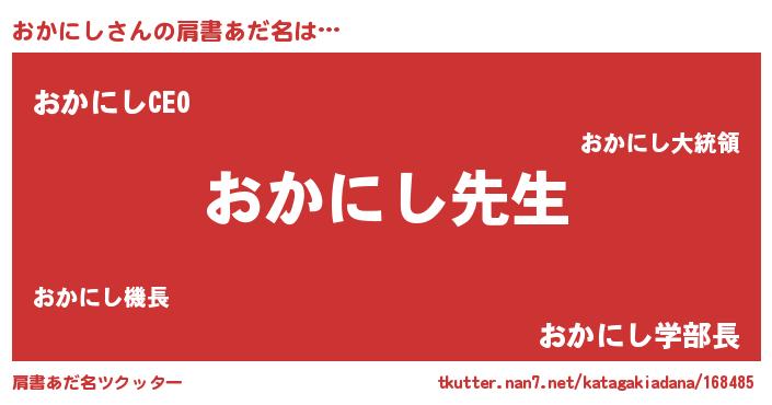 | 男性向けラノベタイトル風あだ名 | 『おかにしという概念が存在しない退屈な世界 』 |