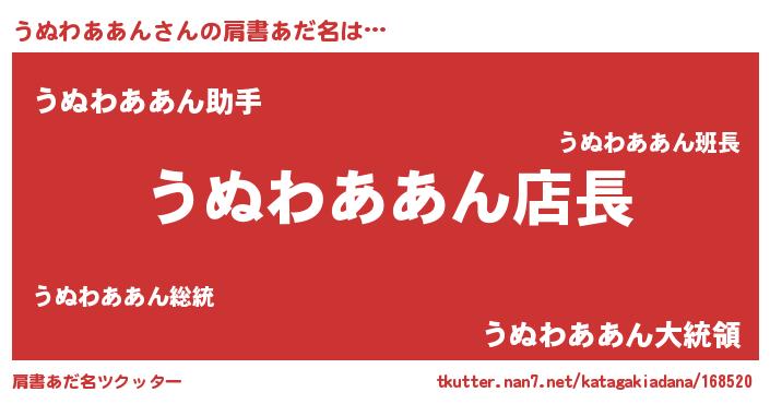 | ヘコむあだ名 | 『うぬにゅー』『つくし』『うぬを』 |