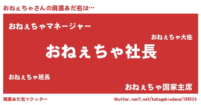 | ファンタジー風あだ名 | 『オネフェル』『エターナルオネェチャー』 |