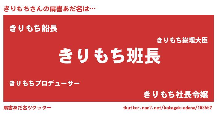 | 女子向けラノベタイトル風あだ名 | 『きりもち様がみてる』 |