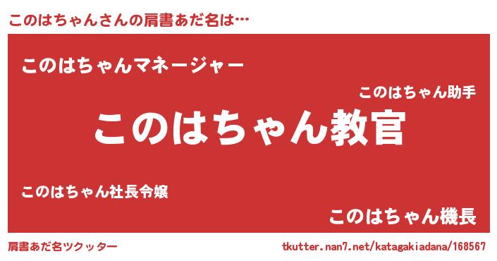 | ヒーロー風カッコイイあだ名 | 『仮面コノダー』『スーパーコノハチャン』 |