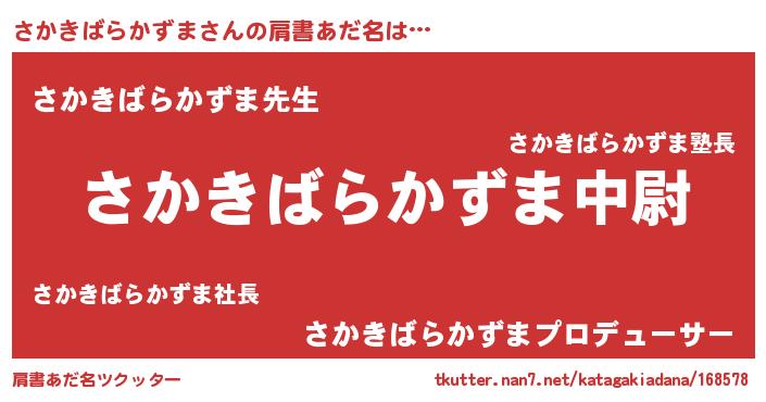 | 可愛いあだ名 | 『さかぷりん』『さかきばらかずまママ』 |