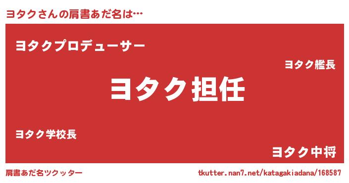 | ヘコむあだ名 | 『ヨタク(苦笑)』『ヨタっふぃ~』 |
