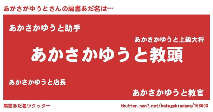 | ヘコむあだ名 | 『あかさかゆうと(笑)』『あかにゅー』 |
