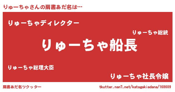 | 男性向けラノベタイトル風あだ名 | 『緋弾のリューチャ』『りゅーちゃの憂鬱』 |