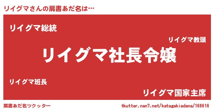 | 男性向けラノベタイトル風あだ名 | 『リイグマの憂鬱』 |