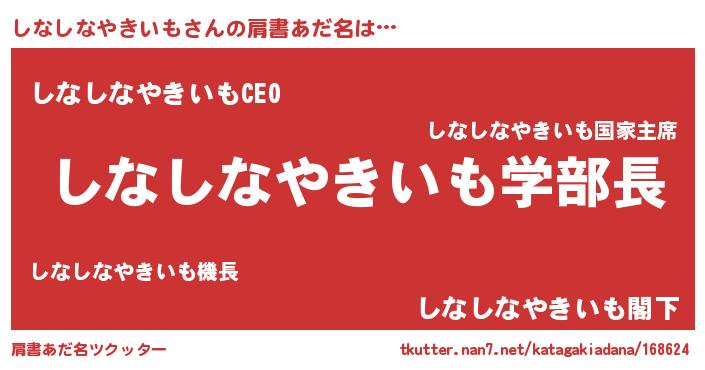 | ヒーロー風カッコイイあだ名 | 『天空の使者しなしなやきいも』 |