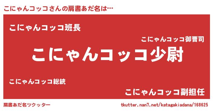 | 女子向けラノベタイトル風あだ名 | 『こにゃんコッコの玉の輿計画!』 |