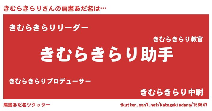 | ポケモン風あだ名 | 『キックウザ』『ヒキムラキラリ』 |