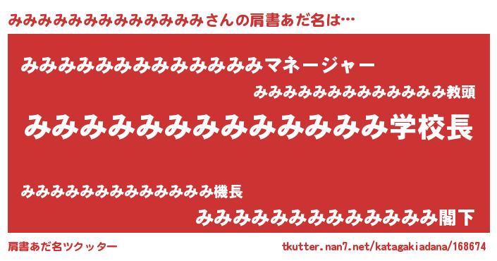 | ヒーロー風カッコイイあだ名 | 『天空の使者みみみみみみみみみみみみみ』 |