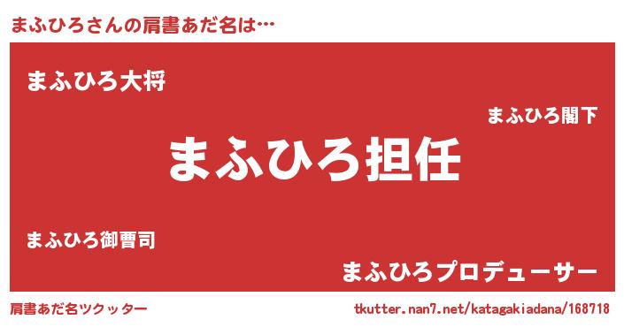 | ヒーロー風カッコイイあだ名 | 『ネオマフヒロ』『超時空戦士マフヒロ』 |