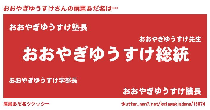 | 意味不明あだ名 | 『自称おおやぎゆうすけ』 |