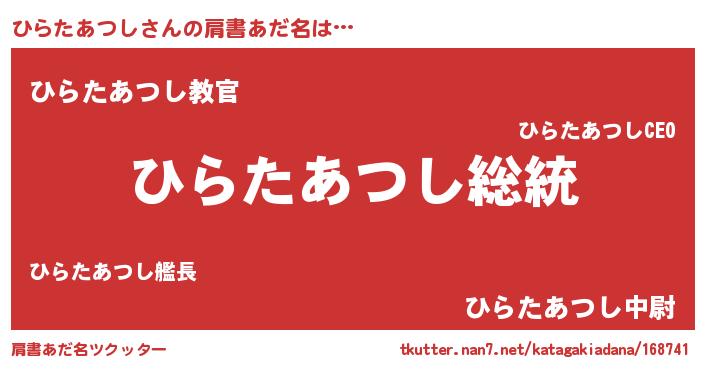 | 女子向けラノベタイトル風あだ名 | 『ひらたあつしストレイドッグス』 |