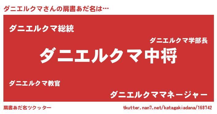 | 男性向けラノベタイトル風あだ名 | 『ダニエルクマスレイヤー』 |