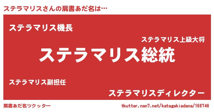 | ヒーロー風カッコイイあだ名 | 『最強戦士ステラマリス』『仮面ステダー』 |