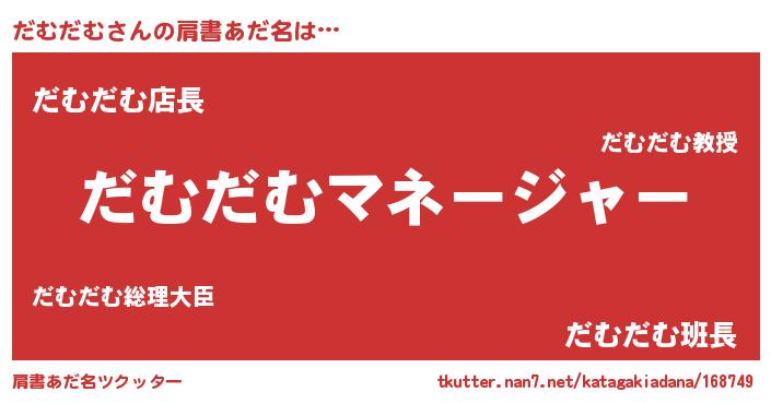 | ヘコむあだ名 | 『だむにー』『だむ太郎』『豆乳』 |