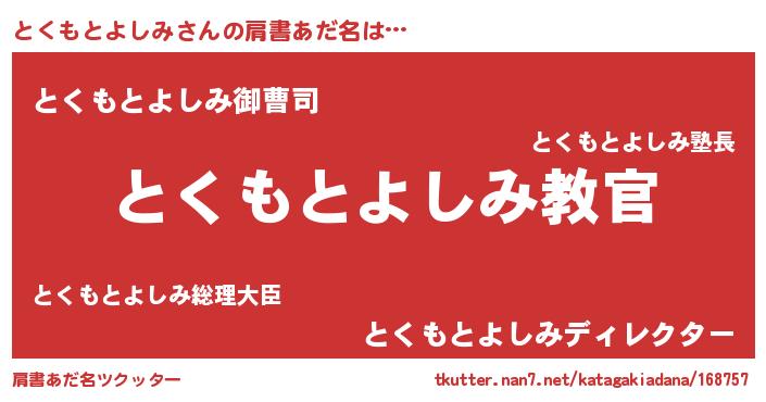 | 胡散臭い通販商品みたいなあだ名 | 『ハリウッド女優が絶賛した世界で10本だけ現存している希少なブランデー…その名も「とくもとよしみ」』 |