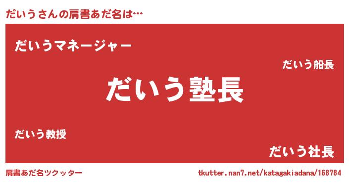 | 女子向けラノベタイトル風あだ名 | 『だいうは平凡を望む』 |