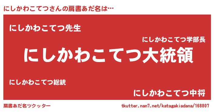 | ファンタジー風あだ名 | 『エターナルニシカワコテツー』 |