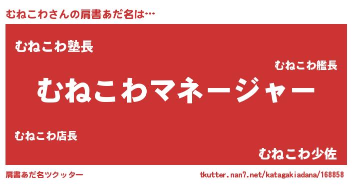 | 意味不明あだ名 | 『とにかく怪しいむねこわ』 |