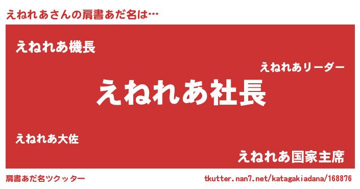| ヒーロー風カッコイイあだ名 | 『スーパーエネレア』『銀牙騎士エネ』 |