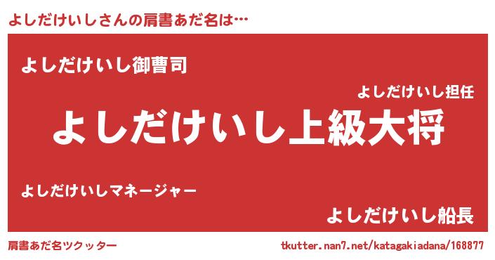 | ヘコむあだ名 | 『よしっふぃ~』『よしだけいし(震え声)』 |