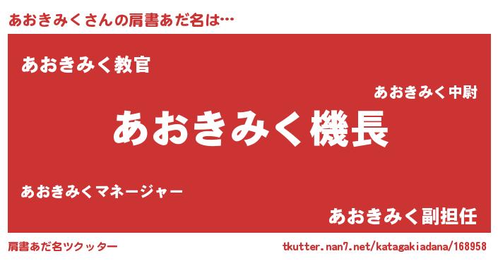 | 意味不明あだ名 | 『住所不定無職あおきみく(93歳)』 |