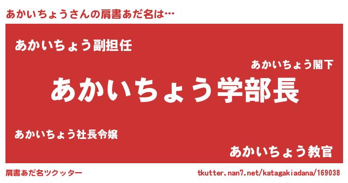 | ヘコむあだ名 | 『あかいちょう(遠い目)』『あかっふぃ~』 |
